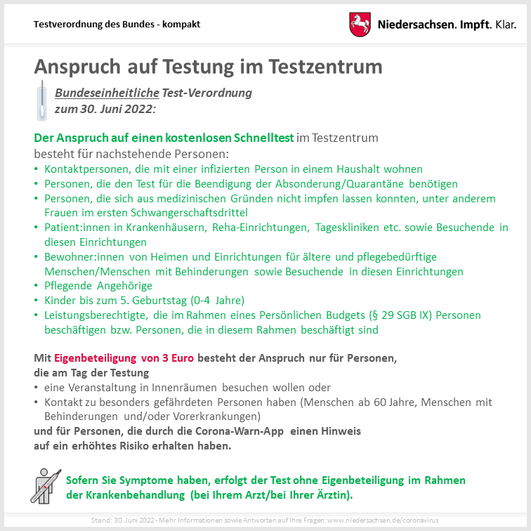 Niedersächsische Absonderungsverordnung – gültig ab 2. Juli 2022:Niedersächsische Absonderungsverordung (gültig ab 02. Juli 2022)